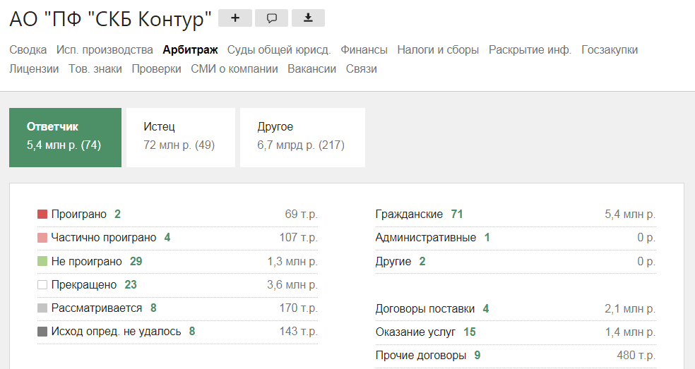 Данные о российских судах общей юрисдикции отражаются с глубиной в три года. Это споры с участием вашего контрагента по трудовым отношениям, компенсации вреда, взысканиям задолженностей по займам и кредитам, имущественные споры.