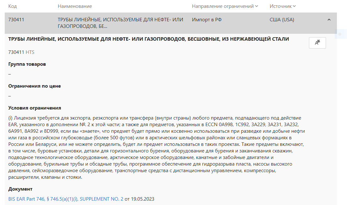 Сервис находит всю информацию, нужную для принятия решения о возможности ввоза или вывоза товара: